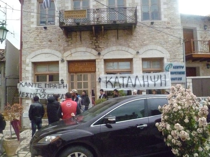 Από τις 7.00 σήμερα το πρωί οι κάτοικοι της Δημητσάνας και εκπρόσωποι φορέων της περιοχής έχουν προχωρήσει σε κατάληψη του δημαρχείου Γορτυνίας στην Δημητσάνα. Οι κάτοικοι και οι φορείς διαμαρτύρονται και συμπαρίστανται στο σύλλογο γονέων και κηδεμόνων, που αντιδρούν στο κλείσιμο του ιστορικού γυμνασίου-λυκείου της Δημητσάνας.