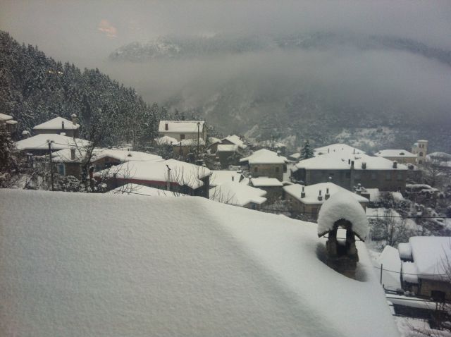 Τελικά ο καιρός δεν έκανε το χατήρι στους μικρούς μας φίλους που περίμεναν με αγωνία να πετάξουν σήμερα τον χαρταετό τους.Από χθες το βράδυ ο καιρός φόρεσε ξανά το χειμωνιάτικο πρόσωπό του και από τη νύχτα άρχισε να βρέχει στα πεδινά και να χιονίζει στα ορεινά. Από τις πρώτες πρωινές ώρες τα χιόνια κατέβηκαν και πιο χαμηλά.