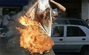 Ο άνδρας που είχε περιλούσει με βενζίνη το παντελόνι του και το χώρο γύρω του, παρά τις προσπάθειες ειδικού διαπραγματευτή της αστυνομίας, λίγο μετά τις 6 το απόγευμα έβαλε φωτιά.