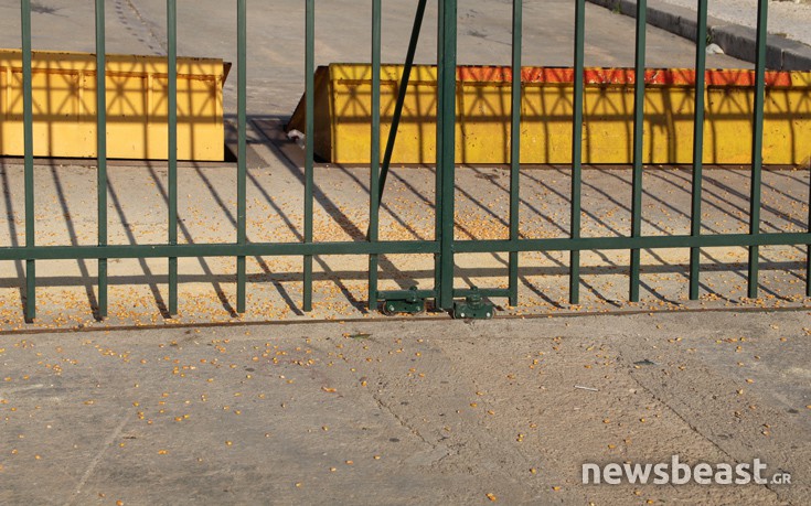 Κατά τη διάρκεια του συλλαλητηρίου της ΑΔΕΔΥ, διαδηλωτής άδειασε σακούλα με καλαμπόκι στα κάγκελα που έχουν τοποθετηθεί μπροστά στην είσοδο της Βουλής στην οδό Αμαλίας.