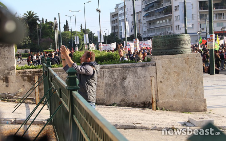 Έναν πρωτότυπο τρόπο βρήκε ένας διαδηλωτής για να διαμαρτυρηθεί για το ασφαλιστικό νομοσχέδιο που ψηφίστηκε από τους ΣΥΡΙΖΑΝΕΛ χθές βράδυ στη Βουλή.