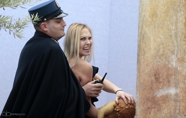 Μία ημίγυμνη ακτιβίστρια της φεμινιστικής ομάδας (Femen) προσπάθησε