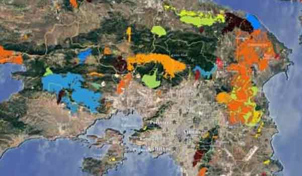 αποτυπώνει τα εδάφη που έχουν καεί από το 1984 έως και σήμερα.