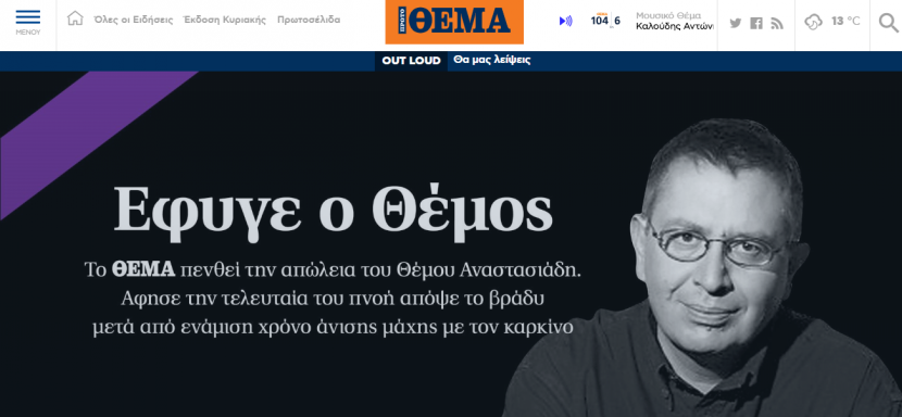 «Το ΘΕΜΑ πενθεί την απώλεια του Θέμου Αναστασιάδη.